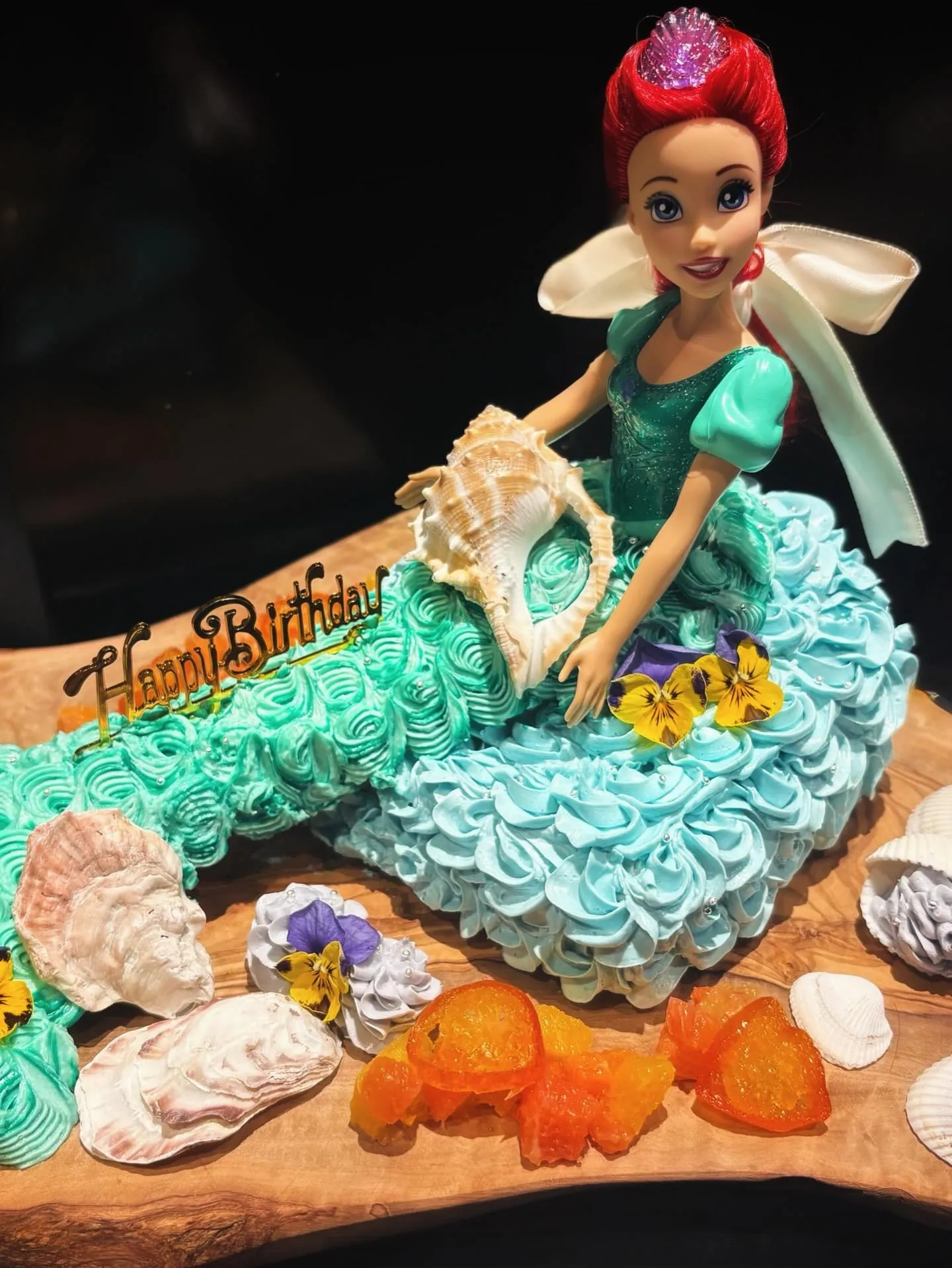今回は、アリエルが大好きな主役様のための「アリエルドールケーキ」